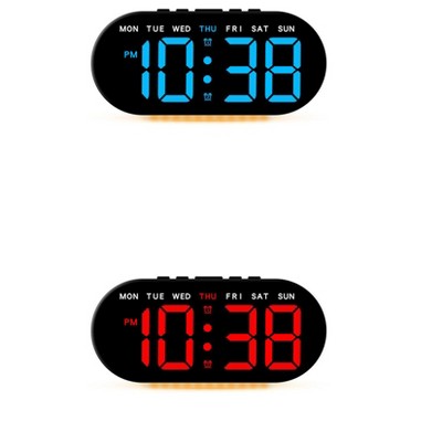 REGALWOVEN 2 Pcs Plastic Digital Corded Adjustable Accurate Dimmable Electric Alarm Clock 6.3 x 2.4 x 1 inch Black Blue/Black Red