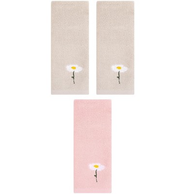 REGALWOVEN 3 Pack Embroidery Pattern Cotton Hand Towels for Bathroom, Kitchen 14" x 30" Light Brown/Pink