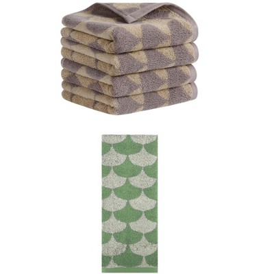 REGALWOVEN 3 Pack Geometric Pattern Soft Absorbent Cotton Hand Towels for Bathroom 13" x 29" Brown/Green