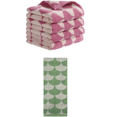 REGALWOVEN 3 Pack Geometric Pattern Soft Absorbent Cotton Hand Towels for Bathroom 13" x 29" Pink/Blue