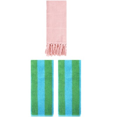 3 pcs hand towels, solid hand towels: 1 pc-14" x 30", striped hand towels: 2 pcs-14" x 30"