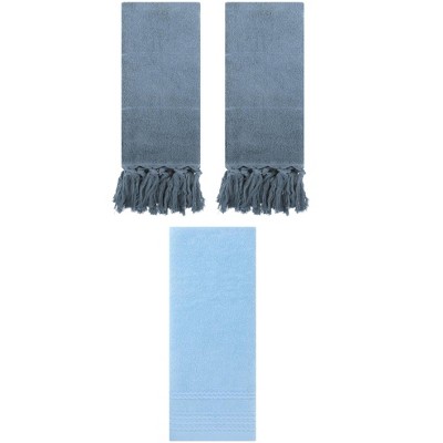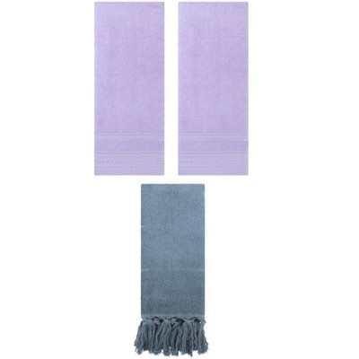 REGALWOVEN 3 Packs Checkered and Tassels Absorbent Soft Cotton Bathroom Hand Towel Blue/Purple 14" x 30"/14" x 28"