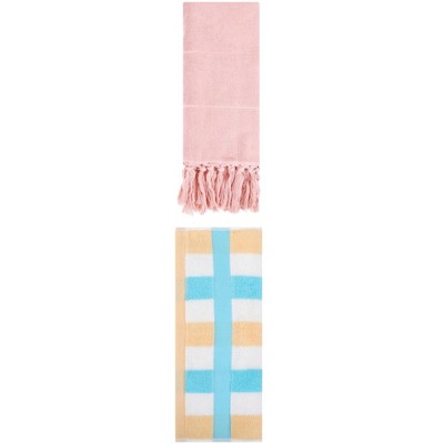 REGALWOVEN 3 Packs Cotton Absorbent Soft Decorative Bathroom Hand Towel for Kitchen Pink/Blue Yellow 14" x 30"/13" x 29"