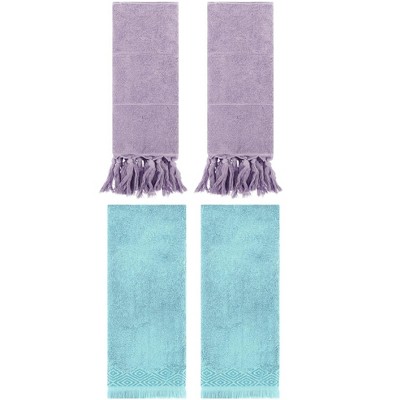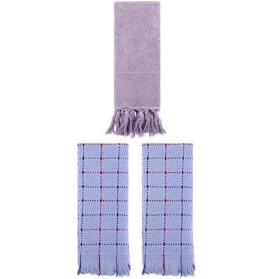 REGALWOVEN 3 Packs Cotton Absorbent Soft Decorative Bathroom Hand Towel for Kitchen Purple/Blue 14" x 30"/13" x 29"