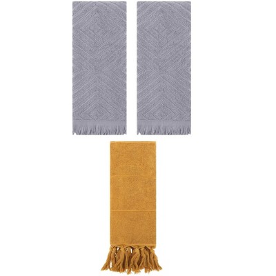 REGALWOVEN 3 Packs Cotton Absorbent Soft Decorative Bathroom Hand Towel for Kitchen Yellow/Grey 14" x 30"/13" x 29"
