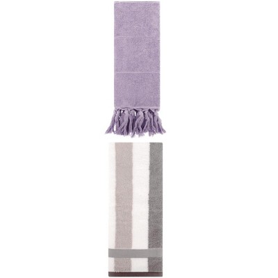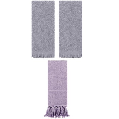 REGALWOVEN 3 Packs Cotton Absorbent Soft Decorative Bathroom Hand Towel Set Purple/Grey 14" x 30"/13" x 29"