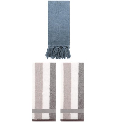 REGALWOVEN 3 Packs Cotton Absorbent Soft Turkish Hand Towels with tassel for Bathroom Blue/Beige 14" x 30"/13" x 29"