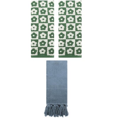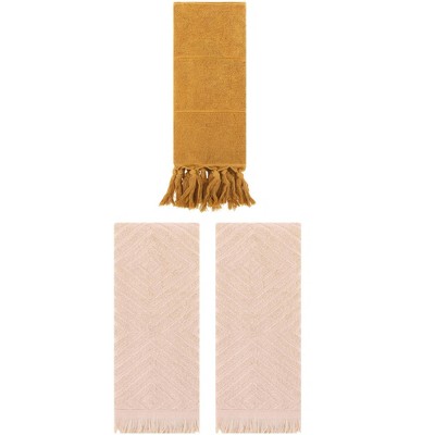 REGALWOVEN 3 Packs Cotton Geometric and Solid Absorbent Soft Hand Towel for Bathroom Kitchen