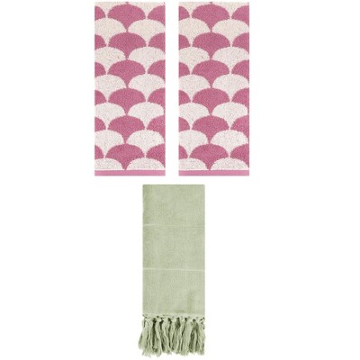 3 pcs hand towels, solid hand towels: 1 pcs-14" x 30", jacquard pattern hand towels: 2 pcs-13" x 29"
