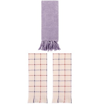 REGALWOVEN 3 Packs Cotton Soft Absorbent Boho Turkish Decorative Hand Towels Purple/White 14" x 30"/13" x 29"
