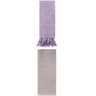 REGALWOVEN 3 Packs Cotton Soft Absorbent Tassels and Waffle Decorative Hand Towel Purple/Camel 14" x 30"/13" x 30"