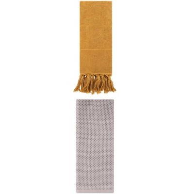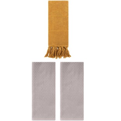 REGALWOVEN 3 Packs Cotton Soft Absorbent Tassels and Waffle Decorative Hand Towel Yellow/Camel 14" x 30"/13" x 30"