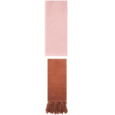 REGALWOVEN 3 Packs Cotton Soft Absorbent Tassels and Waffle Hand Towel Brown/Pink 14" x 30"/13" x 30"