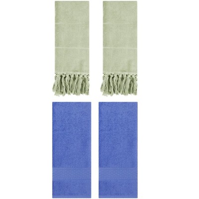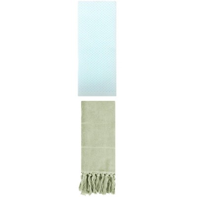 REGALWOVEN 3 Packs Cotton Soft Absorbent Tassels and Waffle Hand Towel Green/Light Cyan 14" x 30"/13" x 30"