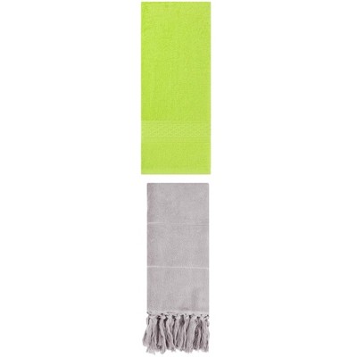 REGALWOVEN 3 Packs Cotton Soft Absorbent Tassels and Waffle Hand Towel Grey/Light Green 14" x 30"/13" x 30"