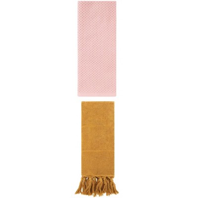 REGALWOVEN 3 Packs Cotton Soft Absorbent Tassels and Waffle Hand Towel Yellow/Pink 14" x 30"/13" x 30"