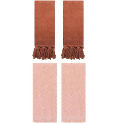 REGALWOVEN 3 Packs Cotton Soft and Absorbent Bathroom Turkish Hand Towels with tassel Brown/Orange 14" x 30"/13" x 29"