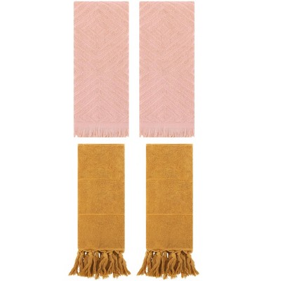 REGALWOVEN 3 Packs Cotton Soft and Absorbent Bathroom Turkish Hand Towels with tassel Yellow/Orange 14" x 30"/13" x 29"