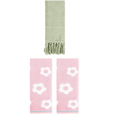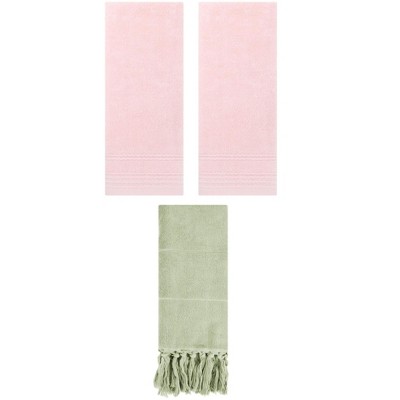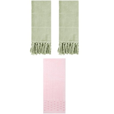 REGALWOVEN 3 Packs Solid Cotton Absorbent Soft Bathroom Hand Towel 14" x 30" Green/Pink