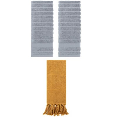 REGALWOVEN 3 Packs Solid Cotton Absorbent Soft Bathroom Hand Towel 14" x 30" Yellow/Light Brown