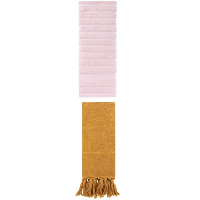 REGALWOVEN 3 Packs Solid Cotton Absorbent Soft Hand Towel for Bathroom 14" x 30" Yellow/Pink