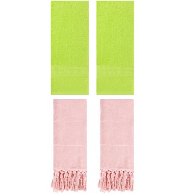 REGALWOVEN 3 Packs Solid Textured and Tassels Soft Absorbent Bathroom Hand Towel for Home Decor Pink/Light Green 14" x 30"/13" x 30"