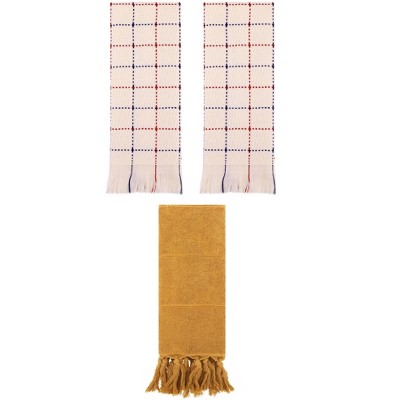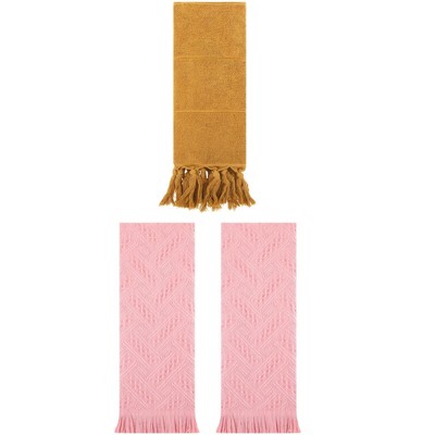 REGALWOVEN 3 Packs Striped and Solid Absorbent Soft Cotton Hand Towel for Bathroom