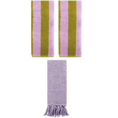 REGALWOVEN 3 Packs Striped and Solid Tassels Absorbent Soft Cotton Hand Towel for Bathroom Blue/Green