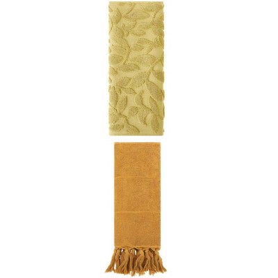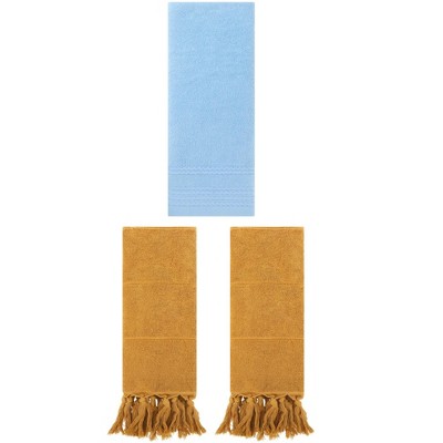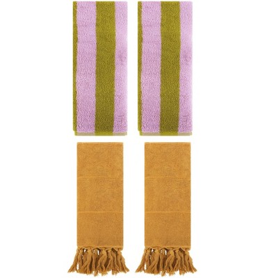 REGALWOVEN 3 Packs Striped and Solid Tassels Absorbent Soft Cotton Hand Towel for Bathroom Yellow/Pink Brown