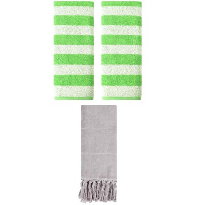 REGALWOVEN 3 Packs Striped and Tassels Hand Towels for Bathroom 14" x 30" Grey/Green