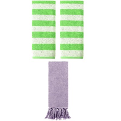 REGALWOVEN 3 Packs Striped and Tassels Hand Towels for Bathroom 14" x 30" Purple/Green