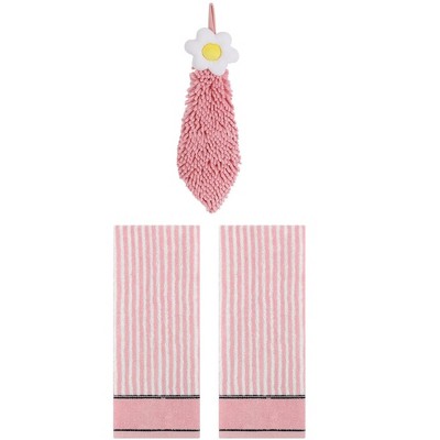 REGALWOVEN 3 Pcs Bathroom Home Decor Cotton Soft Absorbent Floral Hand Towel Pink/Pink-1 13" x 29"/6" x 15"