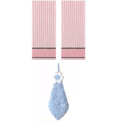 - 3 pcs hand towels, Ffloral pattern hand towels: 2pcs, 13" x 29", 100% cotton; chenille hand towels: 1pcs, 6" x 15", 90% polyester, 10% nylon