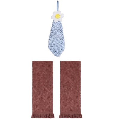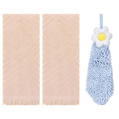 - 3 pcs hand towels, waffle cotton hand towels: 2pcs, 13" x 29", 100% cotton; chenille hand towels: 1pcs, 6" x 15", 90% polyester, 10% nylon