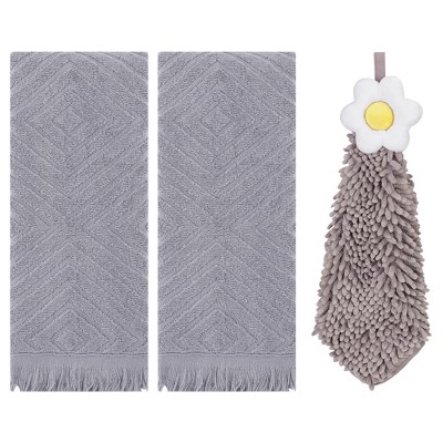 - 3 pcs hand towels, waffle cotton hand towels: 2pcs, 13" x 29", 100% cotton; chenille hand towels: 1pcs, 6" x 15", 90% polyester, 10% nylon