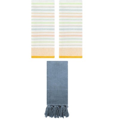 REGALWOVEN 4 Packs Cotton Soft and Absorbent Bathroom Turkish Hand Towels with tassel Blue/Beige 14" x 30"/13" x 29"