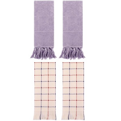 REGALWOVEN 4 Packs Cotton Absorbent Soft Decorative Turkish Bath Towel for Bathroom Blue/Beige 14" x 30"/13" x 29"
