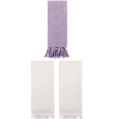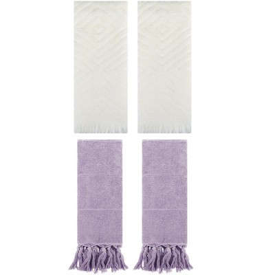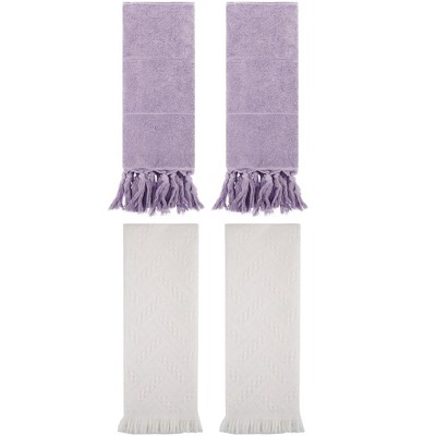REGALWOVEN 4 Packs Cotton Absorbent Soft Decorative Turkish Bath Towel for Bathroom Purple/Beige 14" x 30"/13" x 29"