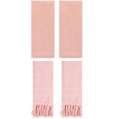 REGALWOVEN 4 Packs Cotton Absorbent Soft Turkish Hand Towels with tassel for Bathroom Pink/Blue 14" x 30"/13" x 29"