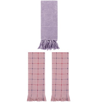 REGALWOVEN 4 Packs Cotton Absorbent Soft Turkish Hand Towels with tassel for Bathroom Purple/Pink 14" x 30"/13" x 29"