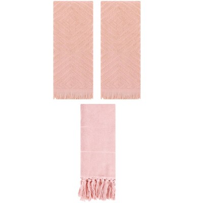 REGALWOVEN 4 Packs Cotton Soft and Absorbent Bathroom Turkish Hand Towels with tassel Pink/Orange 14" x 30"/13" x 29"