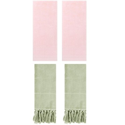 REGALWOVEN 4 PackS Solid Cotton Absorbent Soft Bathroom Hand Towel 14" x 30" Green/Pink