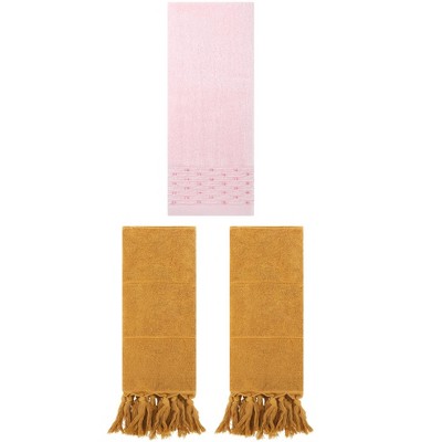 REGALWOVEN 4 PackS Solid Cotton Absorbent Soft Bathroom Hand Towel 14" x 30" Yellow/Pink