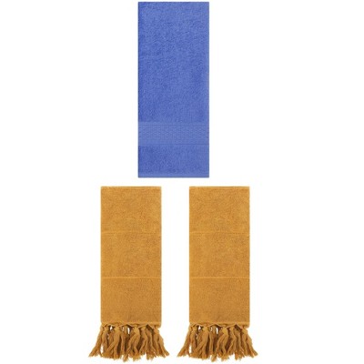 REGALWOVEN 4 Packs Solid Textured and Tassels Soft Absorbent Decorative Hand Towel