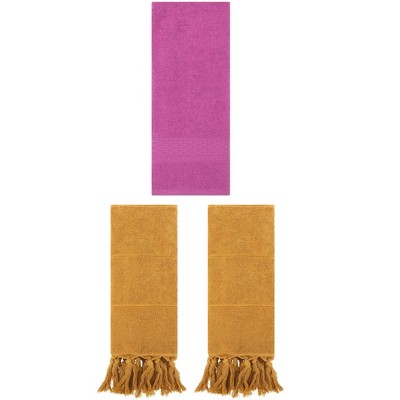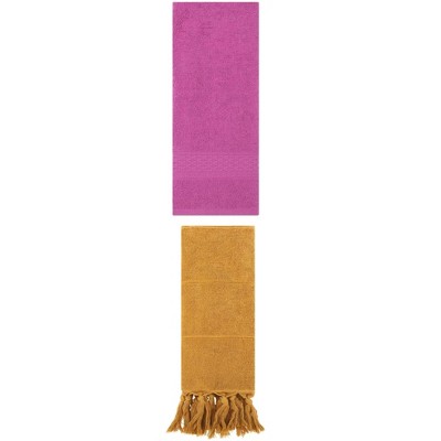 REGALWOVEN 4 Packs Solid Textured and Tassels Soft Absorbent Decorative Hand Towel Yellow/Dark Pink 14" x 30"/13" x 30"