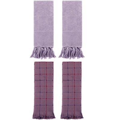 REGALWOVEN 4 Packs Striped and Solid Absorbent Soft Cotton Hand Towel for Bathroom Purple/Light Purple 14" x 30"/13" x 29"