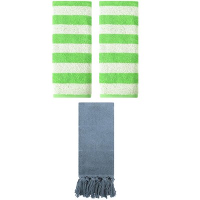 REGALWOVEN 4 Packs Striped and Tassels Hand Towels for Bathroom 14" x 30" Blue/Green