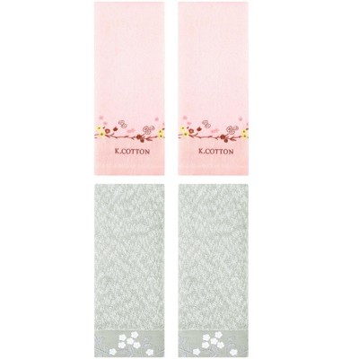 REGALWOVEN 4 Pcs 100% Cotton Floral Embroidered Soft Absorbent Decorative Hand Towel Green/White 14" x 28"/13" x 29"