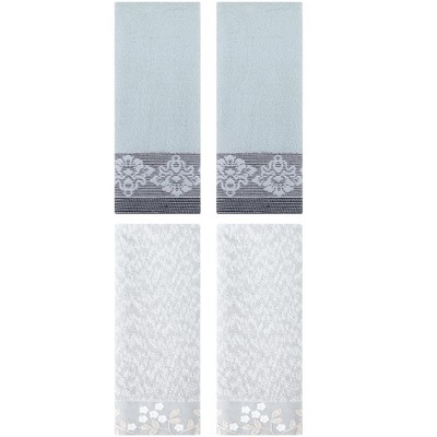 REGALWOVEN 4 Pcs 100% Cotton Floral Embroidered Soft Absorbent Decorative Hand Towel Grey/Khaki 14" x 28"/14" x 31"