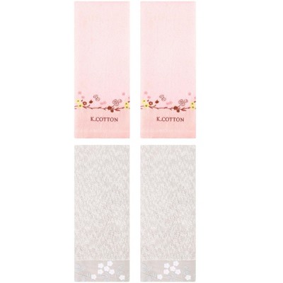 REGALWOVEN 4 Pcs Bathroom Checkered Cotton Face Decorative Hand Towel Set Brown/Beige 14" x 28"/13" x 29"
